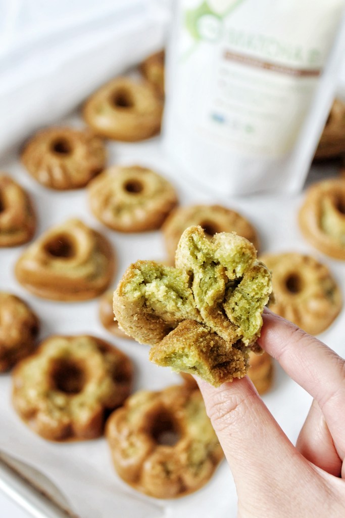 Baked Matcha Mochi Donuts is the perfect way to make deliciously chewy mochi donuts without the pain of frying them. Mochi donuts have been all over the place lately with all kinds of flavors and shapes, but what they all do have in common is that they have this unique chewy texture compared to your regular donut. Since I hate pulling out enough oil to deep fry, I decided to come up with a baked version, amp up the gooeyness of the chewniess, and crisp up the outside. The end result is amazing! When you bite in, you get this initial crisp that gives way to a chewy and gooey center that I have a ton of fun pulling apart. Of course, the highlighted flavor is one of my favorites, matcha, which gives the interior a beautiful green color. Let me know in the comments below if you made this Baked Matcha Mochi Donuts and how it went!