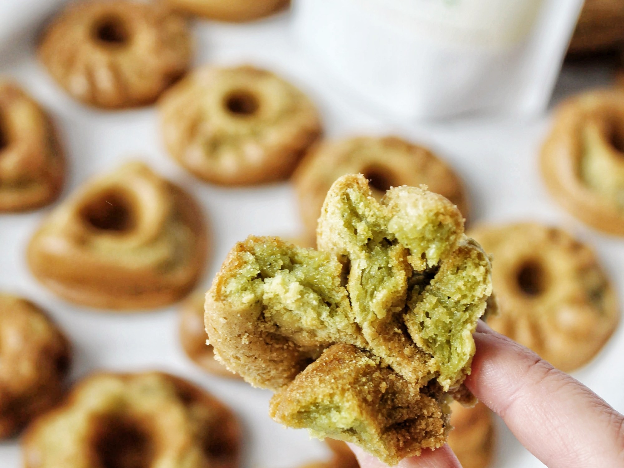 Baked Matcha Mochi Donuts is the perfect way to make deliciously chewy mochi donuts without the pain of frying them. Mochi donuts have been all over the place lately with all kinds of flavors and shapes, but what they all do have in common is that they have this unique chewy texture compared to your regular donut. Since I hate pulling out enough oil to deep fry, I decided to come up with a baked version, amp up the gooeyness of the chewniess, and crisp up the outside. The end result is amazing! When you bite in, you get this initial crisp that gives way to a chewy and gooey center that I have a ton of fun pulling apart. Of course, the highlighted flavor is one of my favorites, matcha, which gives the interior a beautiful green color. Let me know in the comments below if you made this Baked Matcha Mochi Donuts and how it went!